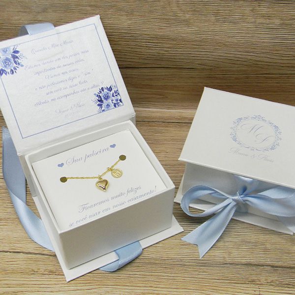 Temos até 5 modelos de pulseiras para sua escolha na versão dourada, com pingentes personalizados com iniciais das madrinhas.